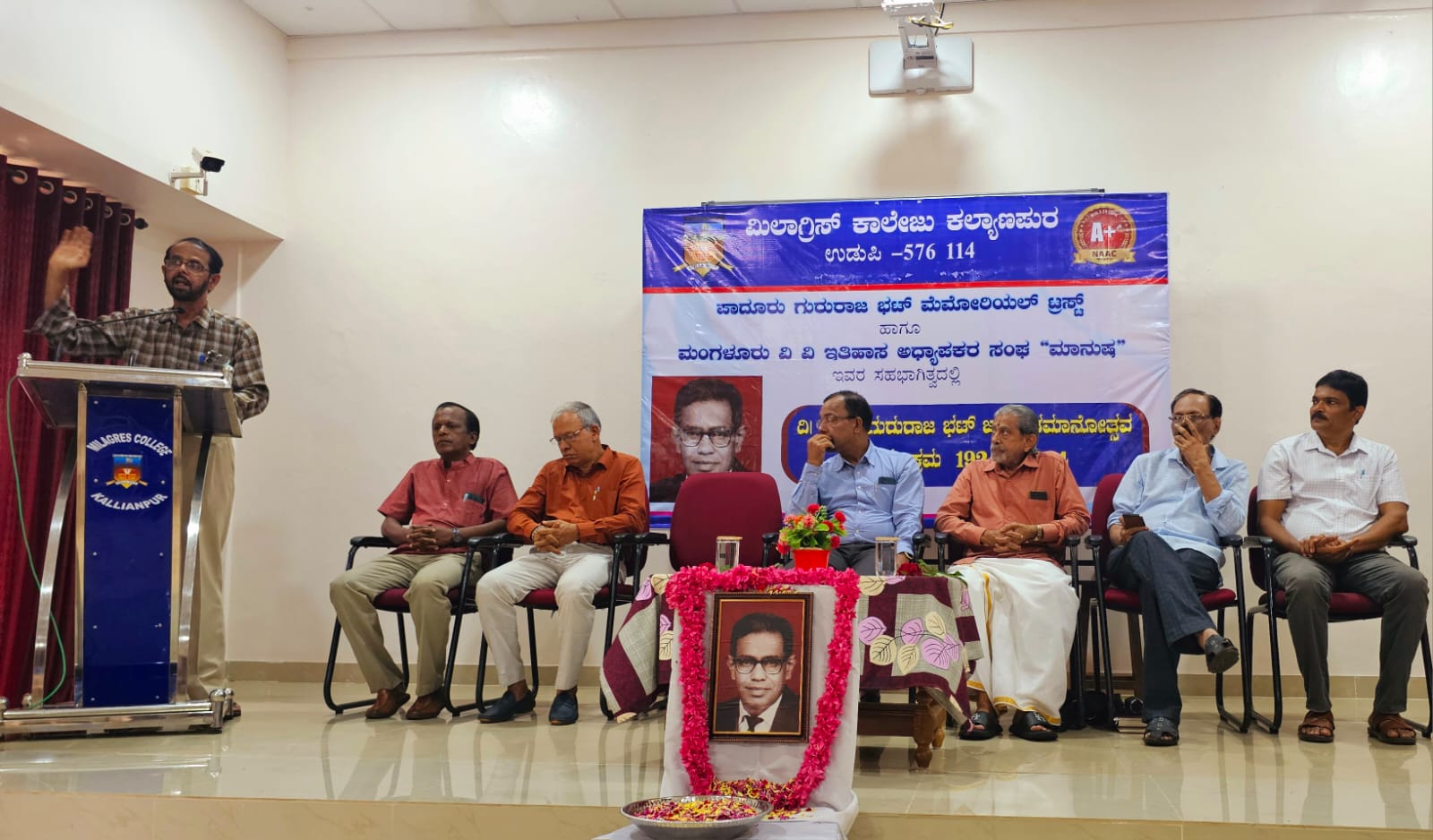 Dr. Gururaj Bhat's birth centenary celebration highlighted his significant contributions to historical research, especially in Tulu-speaking regions. He was also the founder principal of Milagres College, Kallianpur, starting in 1967.
